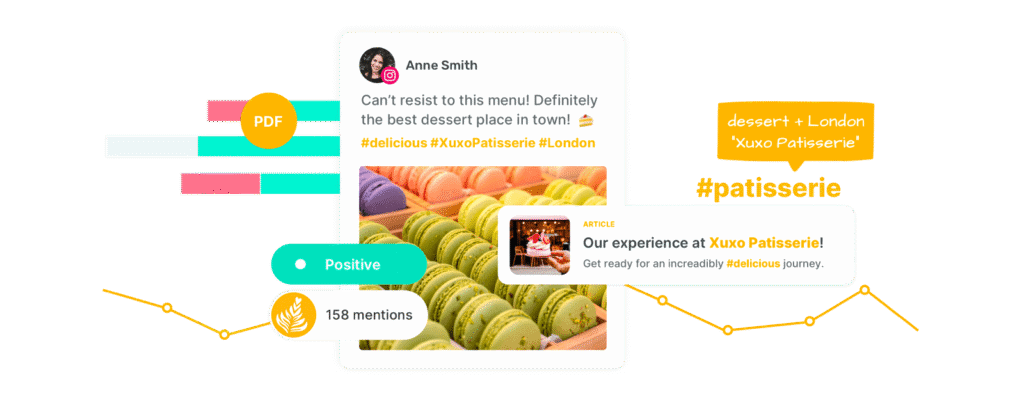 - Dashboards that show brand mentions, sentiment, keywords, and share of voice